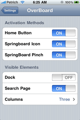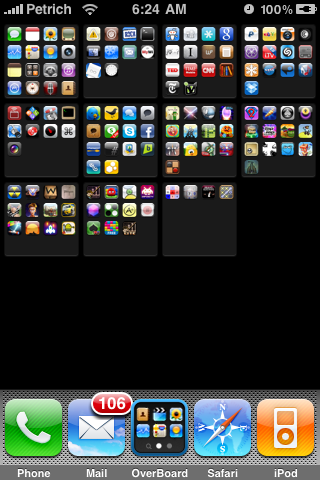 Show an overview of SpringBoard pages and jump between them. Supports WinterBoard themes, advanced customization and multiple activation method (home button, SpringBoard icon, and pinch). Also extends SpringBoard page limit.