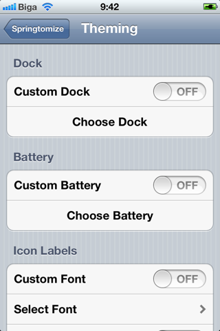 Springtomize allows you to customize your SpringBoard, to make it look and feel how you want. It provides plenty of options to modify even the littlest aspect of your device. Springtomize is really the only tweak you need to customize your device, and it provides all the settings you may need in a single, convenient interface.