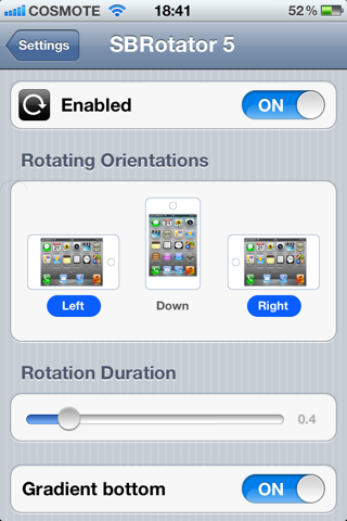 SBRotator4 is here to add native rotation to the iPhone/iPod and give you a rotating SpringBoard! No need to be jealous of iPad rotating when you flip your device, anymore!