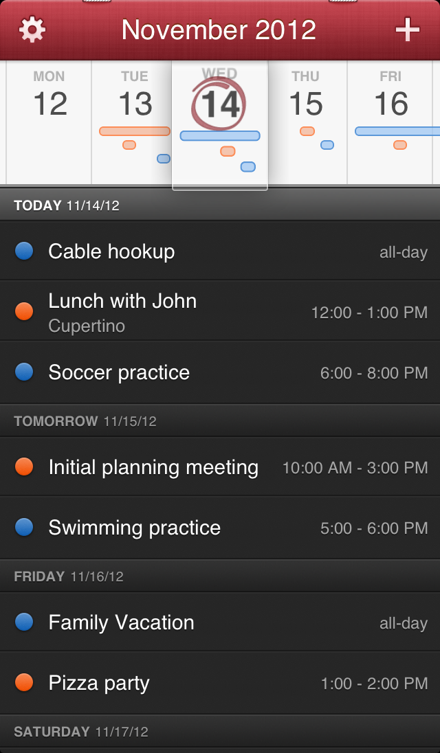 THE FUTURE LOOKS BRIGHT • Fantastical's DayTicker is the efficient and enjoyable way to see your schedule • The expansive and beautiful event list makes it easy to find your events • Tap an event to show and edit its details • Use search to instantly locate specific events • View and manage your Facebook events (requires iOS 6)