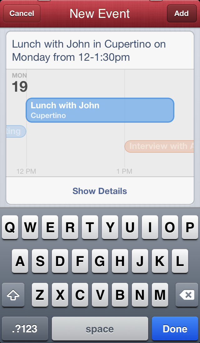 ADDING NEW EVENTS IS FUN • The easiest and fastest way to add new events • Just type in your event details or use dictation* and watch your words magically turn into an actual event!