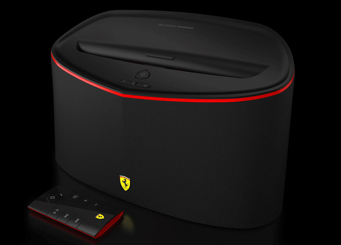 The Scuderia FS1 Air has been inspired by the Scuderia Ferrari racing team and a balance between the GT Car’s innovative lines, creases and curves. It incorporates technology suited for all the latest devices; Apple’s AirPlay technology allows music to be streamed wirelessly from iTunes or directly from Apple device, Bluetooth enabled to wirelessly play your music for Android and Windows based devices, and an Apple Dock Connector to charge and play your Apple Device.