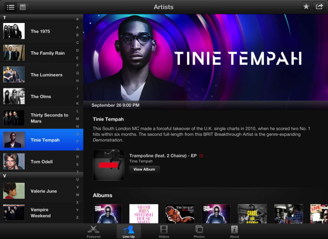 The iTunes Festival returns with 30 nights of free music in September. Browse the eclectic line-up. If you live in the U.K., you can enter to win tickets with the app. If you can't join us in person at the Roundhouse in London, stream selected shows live or afterward for a limited time.