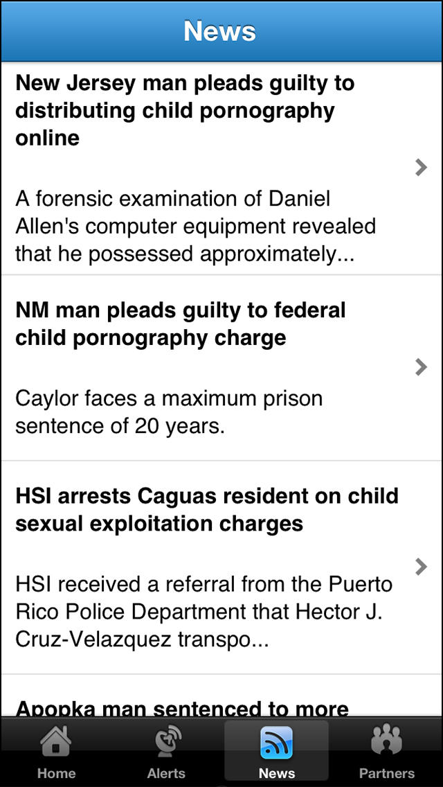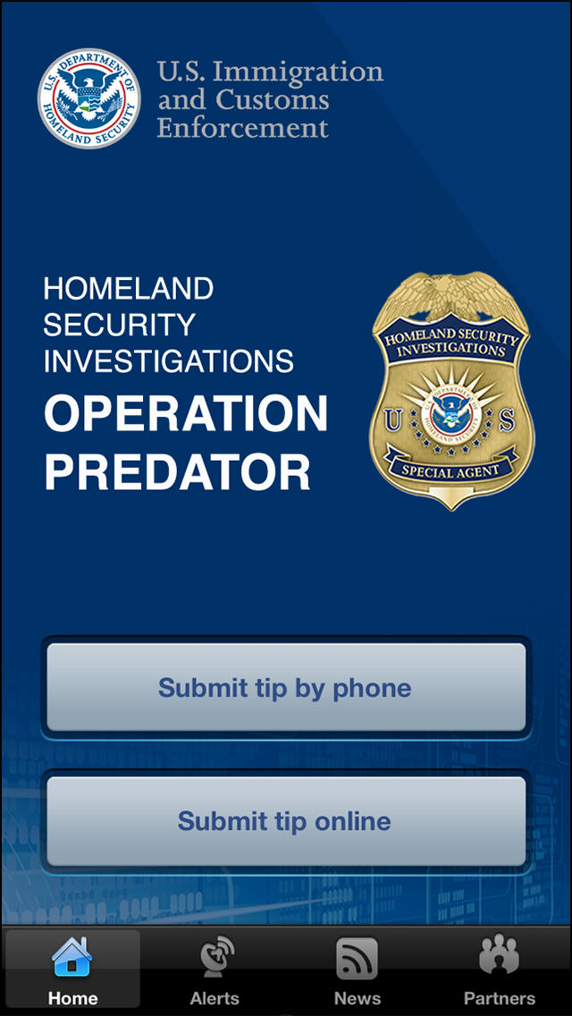 This app makes it easy for the public to report suspected child exploitation in their community. As part of Operation Predator, the public can use this app to help U.S. Immigration and Customs Enforcement's (ICE) Homeland Security Investigations (HSI) special agents identify and locate suspected child predators, and protect victims from further abuse. Call the HSI Tipline directly, submit a tip online, help identify most wanted suspects, read about the latest investigations and arrests, receive alerts when new suspects are being sought and learn about our partner agencies - right from this app.