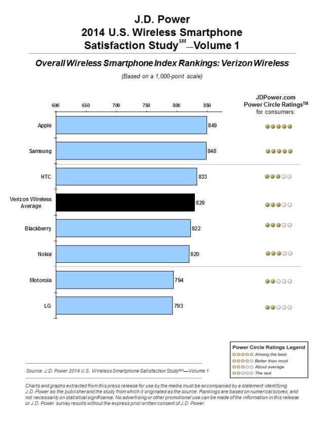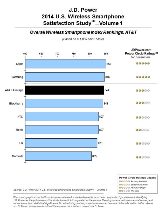Apple achieved the highest average overall satisfaction scores in the J.D. Power 2014 U.S. Wireless Smartphone Satisfaction Study -- Volume 1 released today.