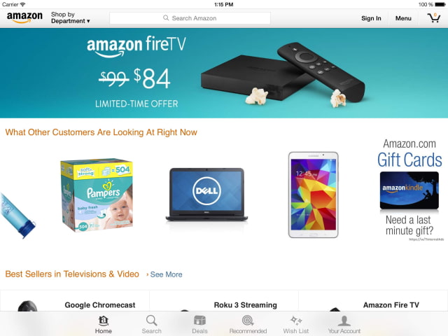 The Amazon app has been updated to let you see more content on the larger displays of the iPhone 6 and iPhone 6 Plus. It's also gained the ability to search with your voice.