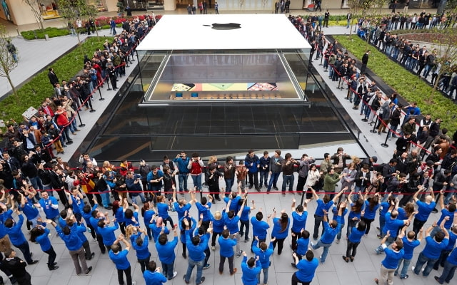 We posted on the impressive Apple Store when it first opened in April. The store is located at the new Zorlu Center in Instanbul, Turkey. It features a glass rectangle that sits above the ground while the two-level store itself is below the surface. The rectangle is topped by a huge white roof featuring the Apple logo. The roof is visible from the heights of surrounding apartment buildings.