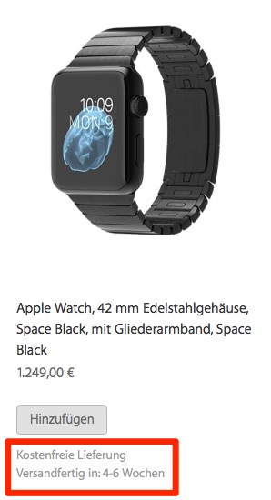 Shipping estimates for the smartwatch never appeared on the U.S. online Apple Store, so hopefully ship times will be better. Pre-orders for the device begin at 12:01 AM PDT on April 10th. We'd recommend you get your order in as soon as possible.