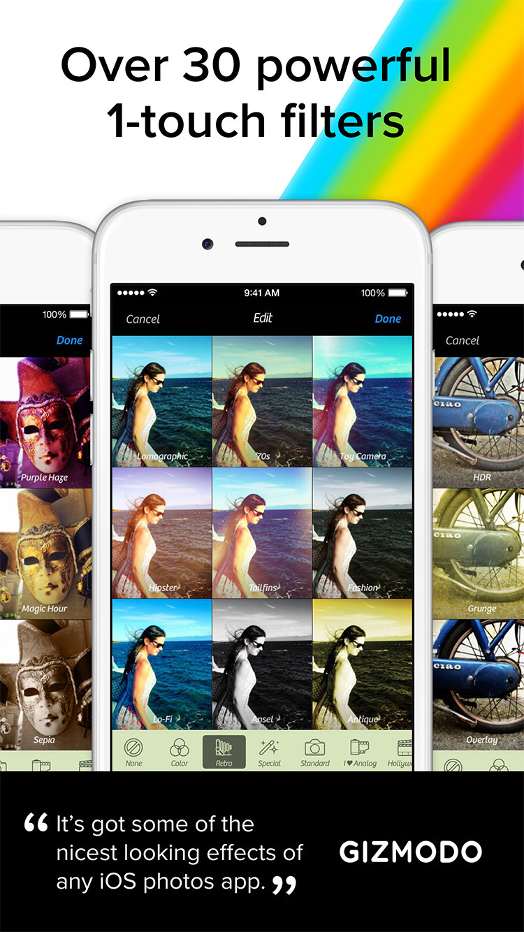 With Camera+ you get several great border designs, from simple black and white borders to more gritty designs, you’ll be able to add wonderful finishing touches.