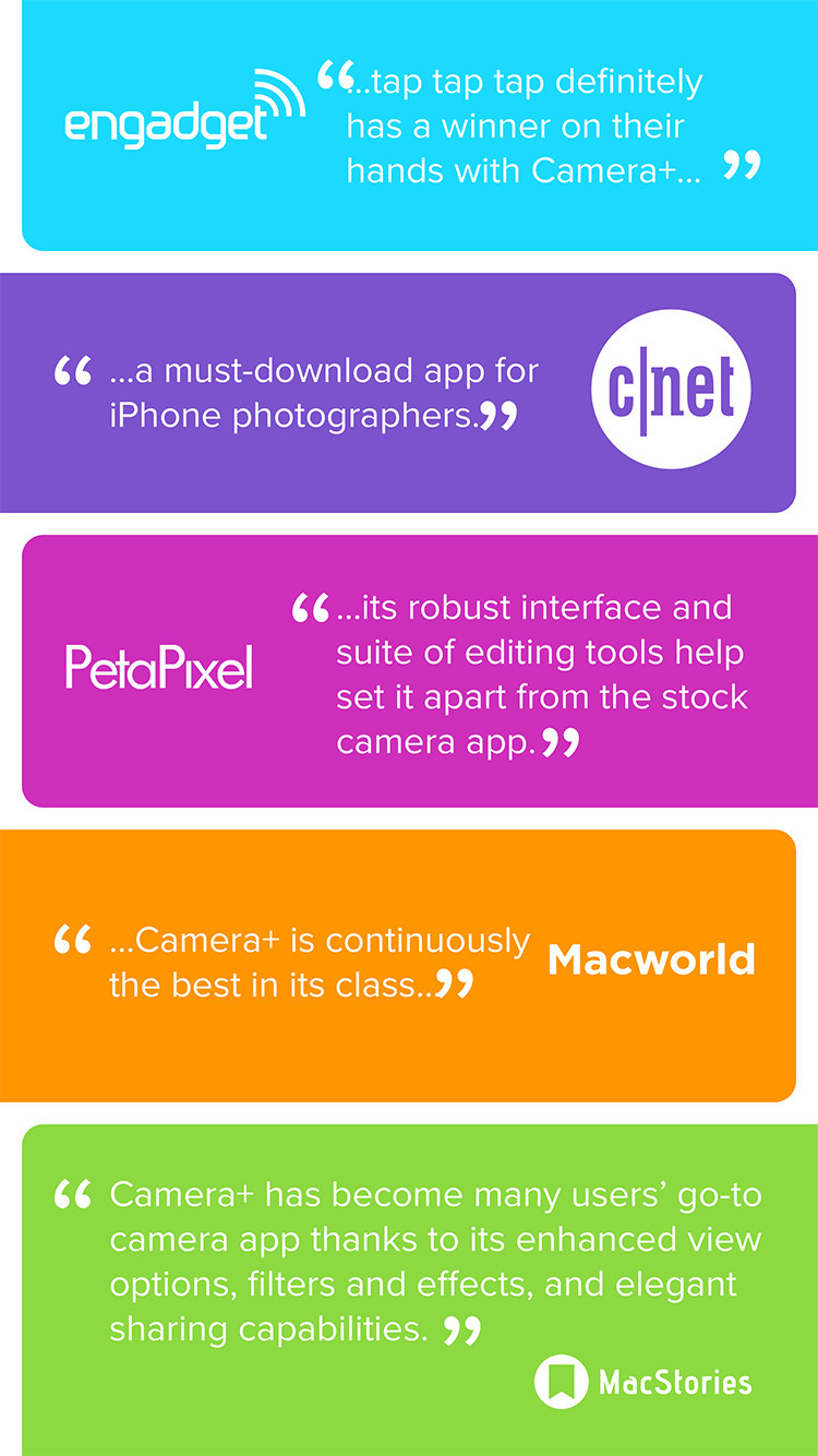 It’s all about one thing... great photos! Whether you’re a seasoned photographer or someone who’s barely touched a camera, Camera+ will make you love taking photos.