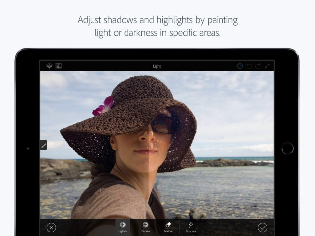 Built on Photoshop technology, Photoshop Fix empowers you to do serious image retouching and restoration on your iPad or iPhone. Heal, smooth, liquify, lighten and make other edits and adjustments that give you the precise look you’re after. Sign in to Adobe Creative Cloud to access edited photos directly within other Adobe mobile and desktop apps to further refine them or use them in other creative projects — it’s all powered by Adobe CreativeSync.