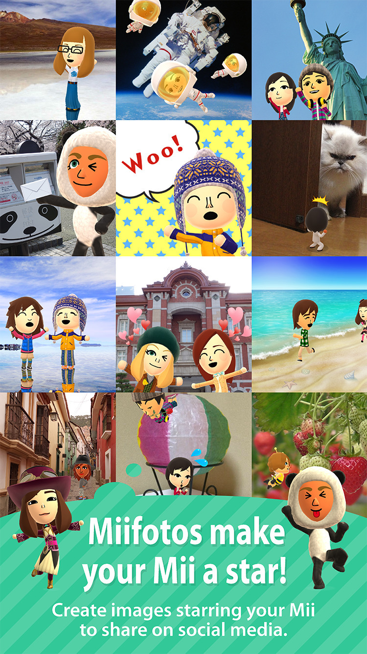 Features: ■ Make a Mii to Look Like You Miitomo features the Mii characters that debuted on Nintendo's Wii system. Choose from a wide library of facial features to make your Mii look just like you. You can also quickly create one by using a smart device's camera. After creating your Mii and giving it a nickname, you can further customize how it speaks and even how it moves and behaves.