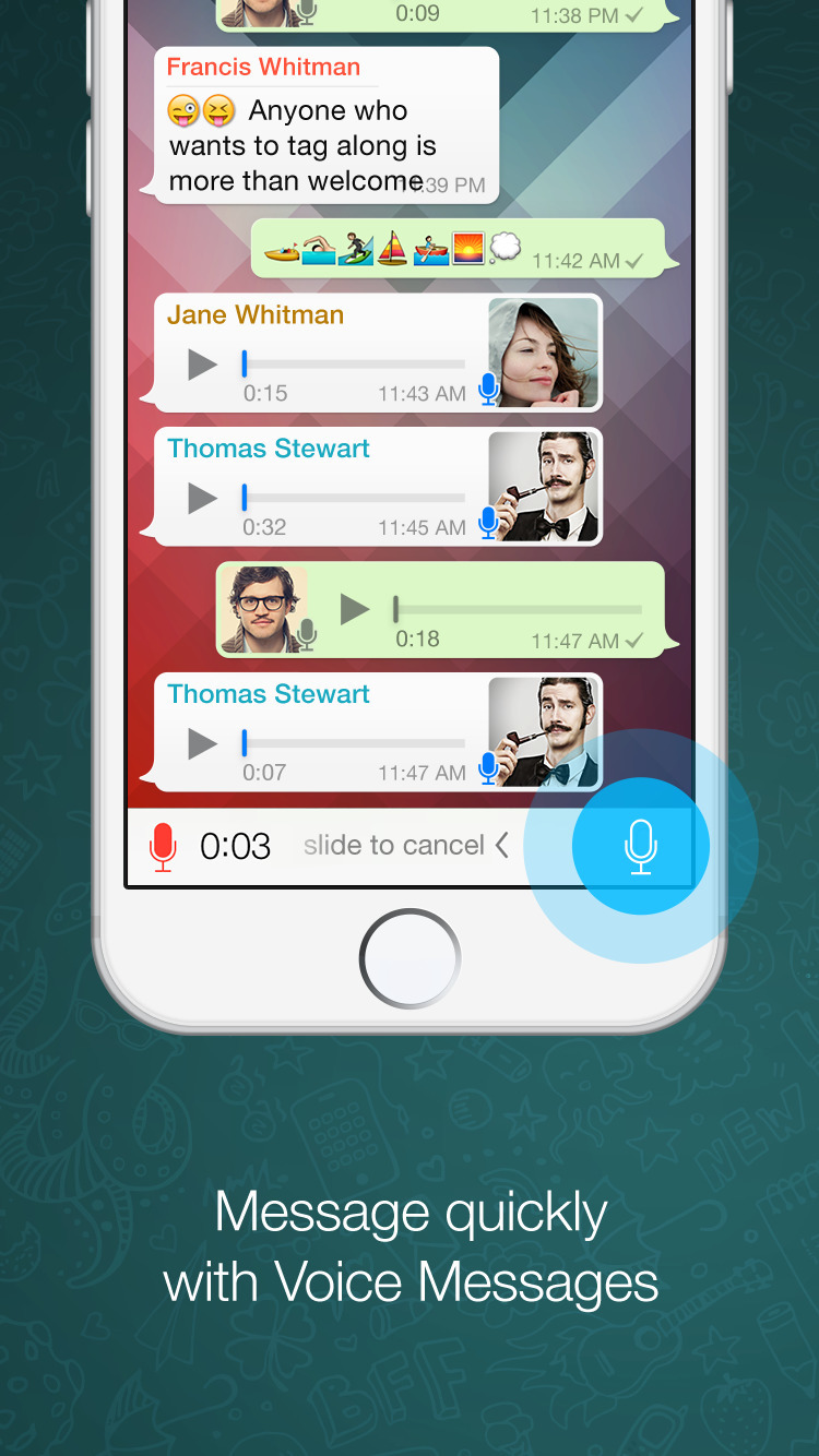 WhatsApp Messenger is a FREE messaging app available for iPhone and other smartphones. WhatsApp uses your phone's Internet connection (4G/3G/2G/EDGE or Wi-Fi, as available) to let you message and call friends and family. Switch from SMS to WhatsApp to send and receive messages, calls, photos, videos, and Voice Messages.