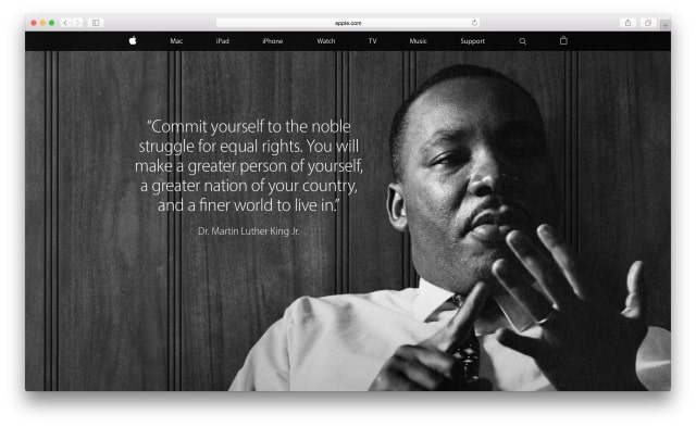 Apple has updated its homepage to commemorate Martin Luther King Jr. Day.