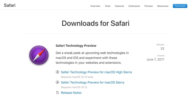 Apple today released Safari Technology Preview for macOS High Sierra.