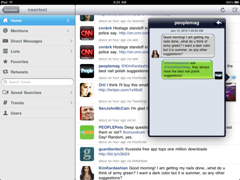 It is easy to do common Twitter tasks such as viewing your timeline, messages, replies, lists and favorites. Echofon has a powerful tweet-authoring where you can write tweets, take photos/videos and update your current location.