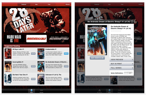 BOOM! Studios has announced the arrival of the BOOM! Studios Comics app for the iPad and iPhone in the iTunes App Store. Built on comiXology's popular digital comic platform, the BOOM! Studios Comics app launches with a number of top pop culture-inspired titles including comics based on 28 Days Later, Die Hard and a word-for-word comic translation of Philip K. Dick's Do Androids Dream Of Electric Sheep?, as well as BOOM! Studios's top-selling original series Irredeemable, Incorruptible and The Unknown.