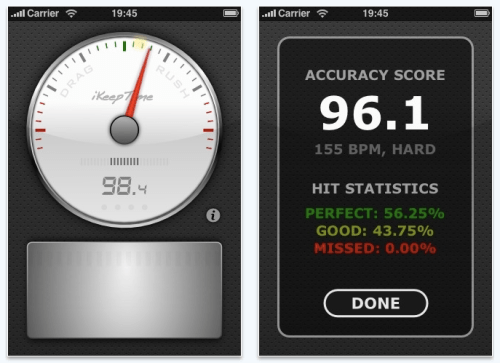 Onyx Apps has announced the release of iKeepTime 1.2, an update to their rhythm training app aimed at musicians for iPhone, iPad, and iPod touch. Extremely accurate, the app let's the user tap along with a metronome at any bps setting. Users get immediate feedback on their tendencies to drag or rush the beat, their overall accuracy in maintaining the beat expressed as a percentage, and their ability to accurately continue the beat when the click of the metronome is silenced.