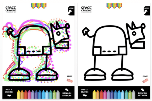 Space Crayons designed just for the iPad, are amazingly fun to use energy infused crayons that allow kids to create stunning interactive coloring pages and kinetic art simply and easily. Preschoolers explore the robot-themed paper sheets, creating original visual works good enough to show, as part of the Nanoschool Kids series of personal education & learning software.