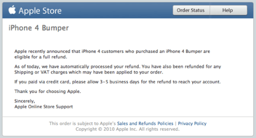 Apple has also begun sending emails to those who await shipment of their Bumper to let them know it will be free.