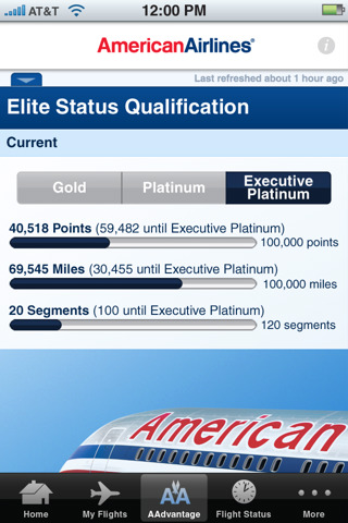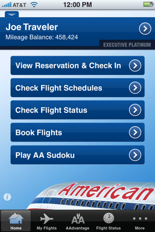 Features: ● Enter your login & password only once: saving your info allows the app to push your upcoming flight details to your home screen, automatically ● Set a parking reminder ● Monitor your place on the standby list ● Track your Elite Status progress ● View personal flight details: get your gate, seat and flight status info at a glance ● Access your mobile boarding pass: the app saves it for you, so its always easy to find ● Use GPS to locate the nearest American Airlines serviced airport ● View terminal maps ● Play Sudoku
