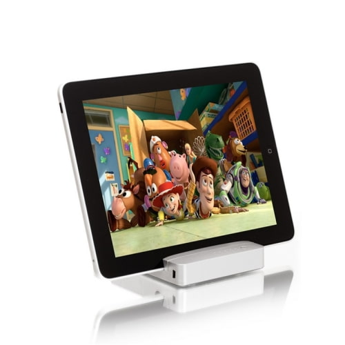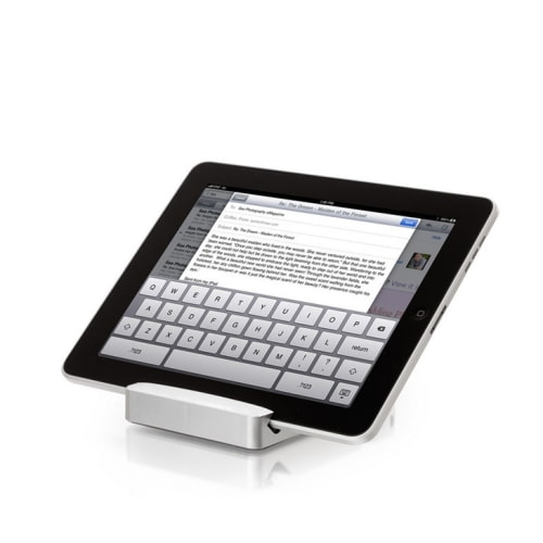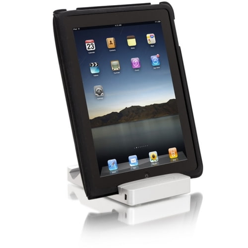 HyperMac Stand is the first and only iPad stand with a built-in 16 hour battery pack. 2 rubberized slots hold the iPad at 18° and 45°, in portrait and landscape positions, with and without a case.