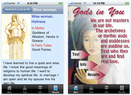 Tenon lepopaikka oy has released Gods in You 1.0 for iPhone, iPod touch and iPad users. With personality tests, explanations of personality types and the effects of childhood associations, this app delves deep into the Jungian philosophy of archetypal ideas and behavior. Gods in You 1.0 is a great stand alone app for those seeking answers to questions about human behavior, but is even more enlightening when paired with the book- "Find Your True Self Through Your Fantasies" by Olavi Moilanen, Ph.D.