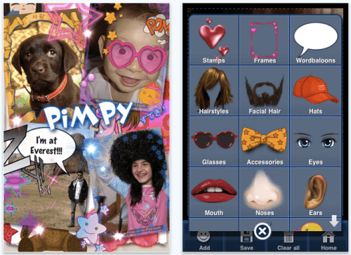 I am the author of iPimp. It has over 1000 stamps and it is still growing. Also there you can zoom in your picture to put the stamps very easy and comfortable on the right position. Also you have dozent of filters for your picture or the stamps. You can also write in newspaper style or with a special created pimp font on the photo. iPimp is also connected to facebook and twitter. So i do not understand why iClarified mention pimpy and iPimp not in any way. sad