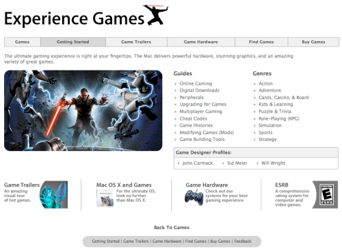 Apple has just launched a new Games site with everything from Game Reviews to Cheat Codes to Hardware Suggestions.