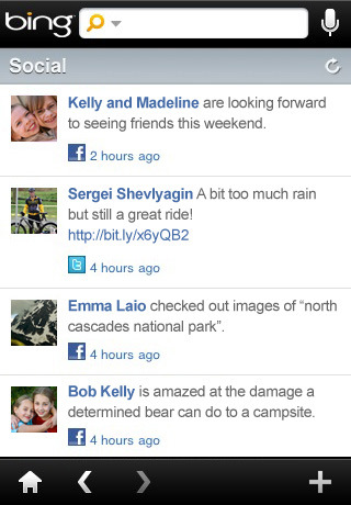 Bing, the new generation of search, helps you make decisions and get the answers you need. See beautiful photography with daily trivia on your home screen. Tell Bing what you are looking for with voice activated search even works with addresses. Get great rates for flights with travel deals and price predicator. Discover whats relevant near you. Find shops, images, movie times (along with reviews, clips and trailers), flight information, weather forecast, and walking or driving directions with up-to-date traffic conditions. And, if you like, use the social feature to see your friends opinions from Facebook and Twitter as part of your search result.