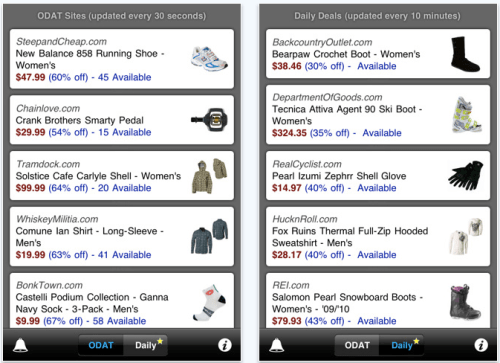 Hunter Research and Technology have announced the release of ODAT Tracker 2.0 on the iTunes App Store. This free app tracks deals from 15 online merchants of outdoor gear and apparel, covering both "one deal at a time" sites and daily deals. ODAT Tracker 2.0 includes the following merchants: