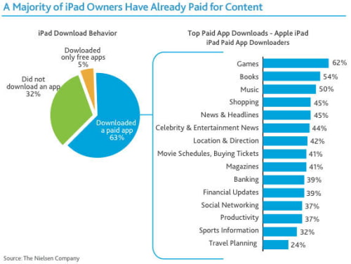 The usually reputable Nielsen Company now says, "This article and the related download have been amended to reflect updates to the percentage of iPad users in the survey downloading apps."