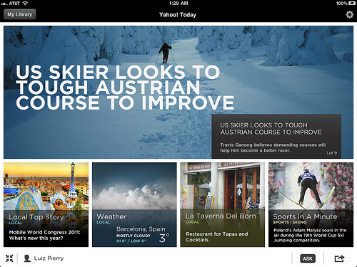 In the first half of 2011, you'll see Yahoo!'s vast digital content library come to life through Livestand from Yahoo! from Sports, News, Finance, Flickr, omg!, and the Yahoo! Contributor Network as iPad and Android tablet applications. -