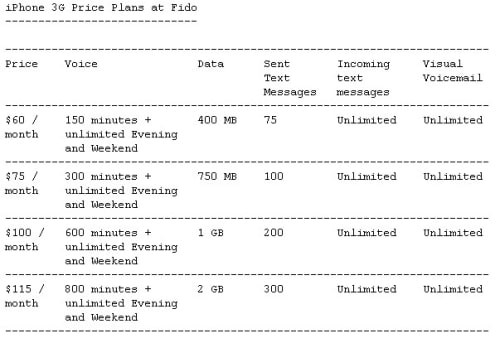 Fido Releases Price Plans for 3G iPhone