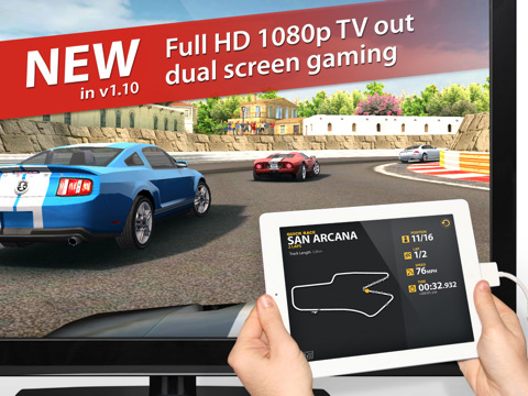 What's New In This Version: * Full HD 1080p TV-out and dual screen gaming support on iPad 2. Experience Real Racing 2 HD like never before in stunning, true 1080p while real-time racing telemetry is displayed on iPad 2 * Enhanced visuals for Alkeisha Island and San Arcana tracks on iPad 2 * Memory optimizations to minimize crashes * Various minor improvements and fixes