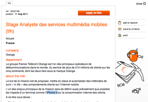 Orange has since amended the job posting to remove references to the iPhone 5.
