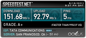 Seriously? Damn I have 100 MB/sec down/up for just under $14 (USD) and on bad days I have about 90 MB/sec down and 80 up.. 100 is almost standard over here (Sweden) and some are getting 1 GB now.. Insane that the US doesn't have higher speed than that.. No offense of course! You have less IP than we do covering a larger area but still.. :/