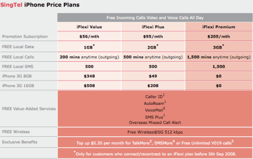 Customers can choose from either an iFlexi Plan or a SingTel Plan, however the iFlexi Plans are only available until September 5, 2008.