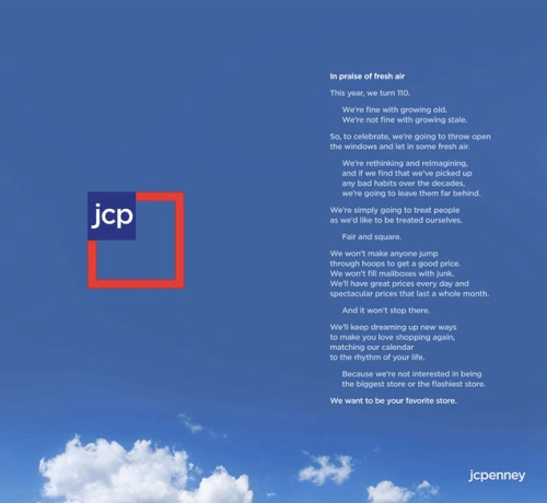 Johnson, who oversaw Apple's retail strategy before starting at Penney's this fall, said on Wednesday that his first steps as chief executive would be to get rid of the nonstop promotions at the store and move to three kinds of prices (everyday, monthly specials and clearance). He announced a new designer partnership with Nanette Lepore, and a new spokeswoman and advertising star, Ellen DeGeneres. He also introduced a new logo, and new color-saturated advertisements that barely mention price.
