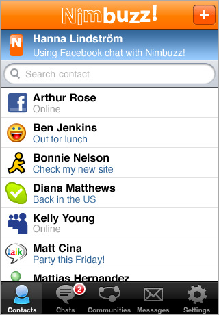 Nimbuzz is a lifestyle application, designed to meet any communication need and is the only chat application to offer landscape chat and IM buddy calling. The centralized contact list aggregates contacts of the most popular social and IM networks, and offers superior VoIP call quality over Wifi.