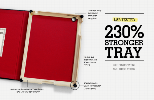 The DODOcase for iPad was updated today with a new, stronger bamboo tray. The new tray is 330% stronger.