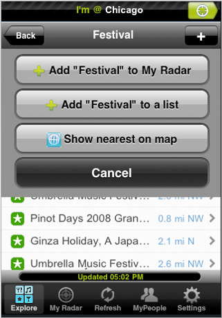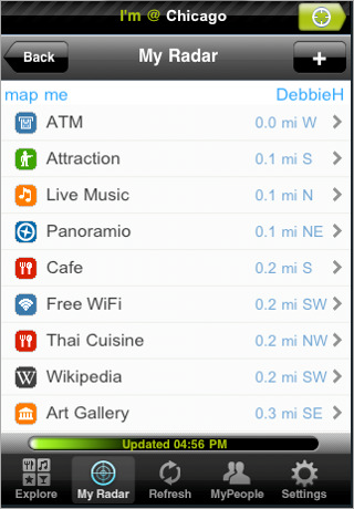 Earthcomber constantly scans their area for any matches, using the iPhone's GPS. Any place that has anything of interest is announced by an optional chime.