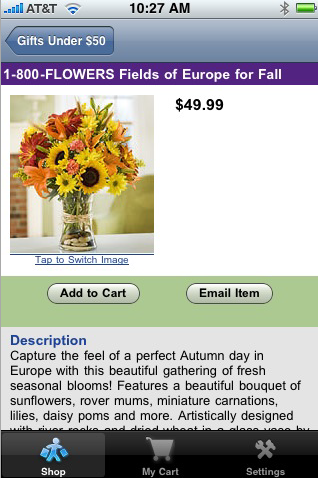 "Providing our customers with the best and easiest way to shop for gifts no matter where they are is a key driver for us," said Jim McCann, CEO and founder of 1-800-FLOWERS.COM. "The new Mobile Gift Center for iPhone and iPod touch delivers a fast and convenient way to gift shop and we're excited to be on the Apple App Store."