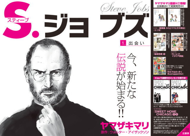 The official manga adaptation of Walter Isaacson's Steve Jobs biography by Mari Yamazaki is now available in the May 2013 issue of the girls' comic anthology Kiss.