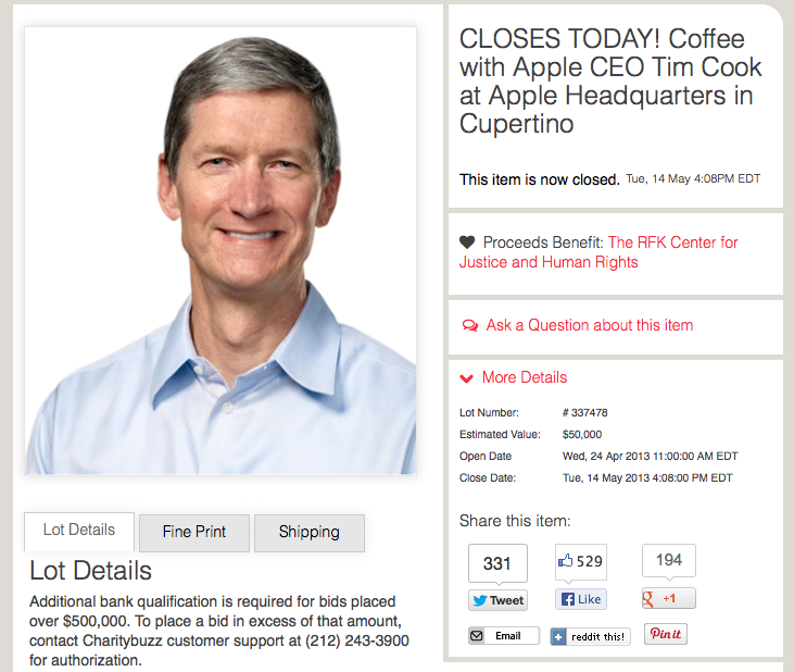 Tim Cook Charity Auction Ends With $610,000 Bid By Anonymous Winner