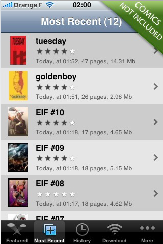 The new 1.1 version of myComics lets view PDF, CBZ, CBR, ZIP files as well as the upcoming ZAVE format (introduced by Ave!Comics). This new version makes it very easy to optimize CBR, CBZ and ZIP files and send them to your iPhone and iPod Touch using a new companion application : Jivaro.