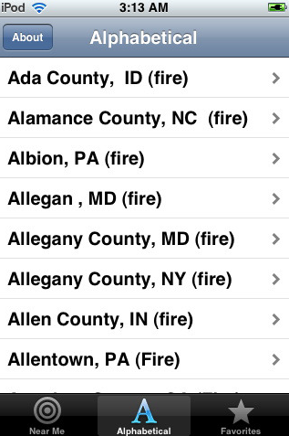 Police Scanner uses the location-aware technology built into the iPhone to help users locate streams near them, or allows them to search through a list of all available streams from across the country. A few international streams have been added and the international directory is expected to grow.