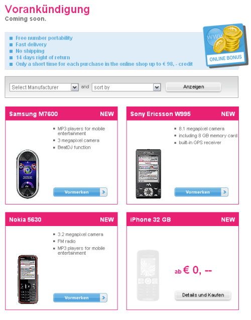 A placeholder for a 32GB iPhone was accidentally posted by T-Mobile Austria but quickly taken down.