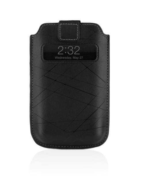 Leather Sleeve with Pull Tab (F8Z465) - $29.99 - Pull tab lifts iPhone from case for quick access and easy navigation - Cutout window allows for easy viewing of time and caller ID