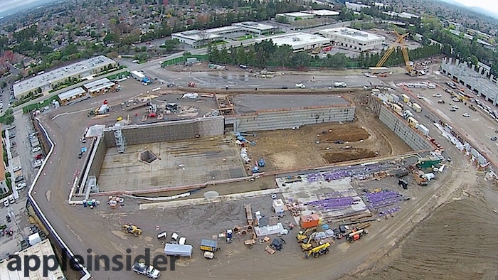In the photos below you can also see that Apple's underground theater is starting taking shape and the parking structure has now reached three stories. Recent building permits reveal the auditorium is valued at $161 million.